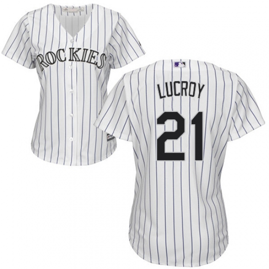 Home>MLB>Colorado Rockies>Jonathan Lucroy>Women's Majestic Colorado Rockies #21 Jonathan Lucroy Replica White Home Cool Base MLB Jersey