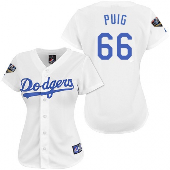 Women's Majestic Los Angeles Dodgers #66 Yasiel Puig Authentic White MLB Jersey