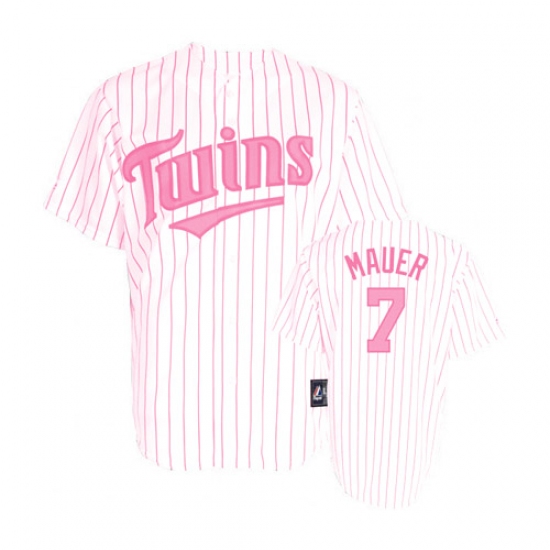 Women's Majestic Minnesota Twins #7 Joe Mauer Authentic White/Pink Strip MLB Jersey