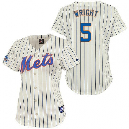 Women's Majestic New York Mets #5 David Wright Authentic Cream/Blue Strip MLB Jersey