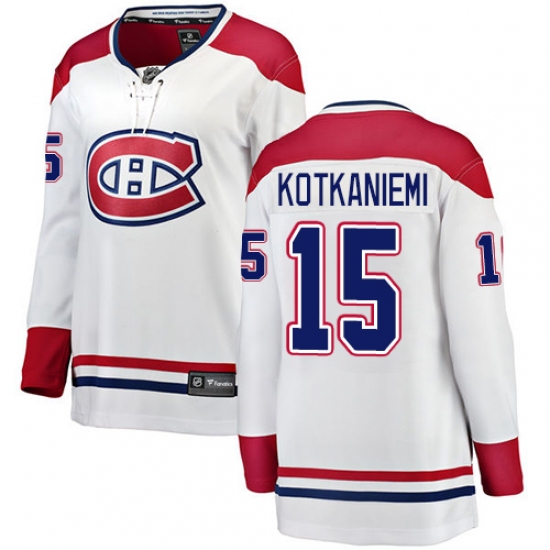 Women's Montreal Canadiens #15 Jesperi Kotkaniemi Authentic White Away Fanatics Branded Breakaway NHL Jersey