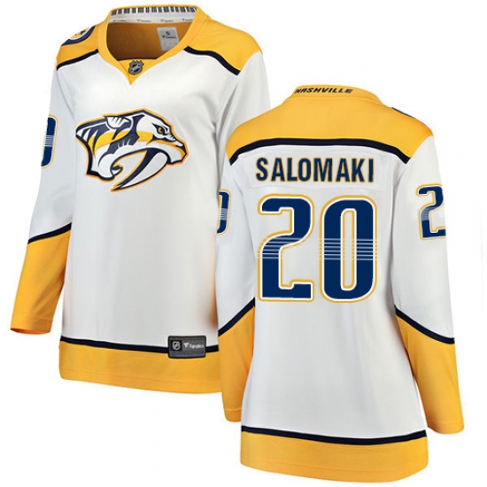 Home>NHL>Nashville Predators>Miikka Salomaki>Women's Nashville Predators #20 Miikka Salomaki Fanatics Branded White Away Breakaway NHL Jersey