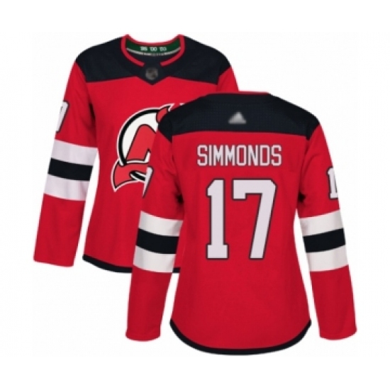 >Women's New Jersey Devils #17 Wayne Simmonds Authentic Red Home Hockey Jersey