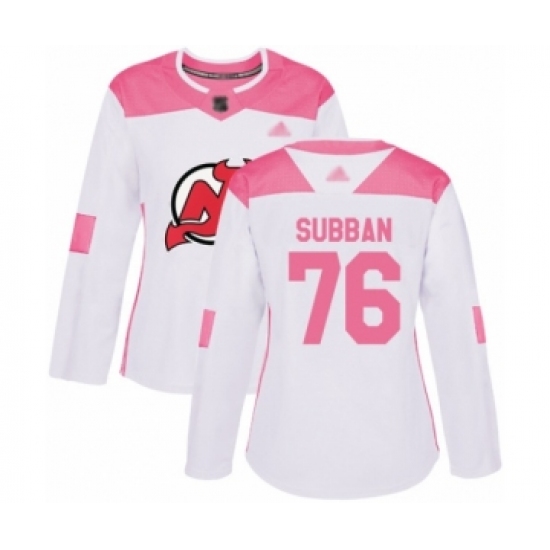 Women's New Jersey Devils #76 P. K. Subban Authentic White Pink Fashion Hockey Jersey