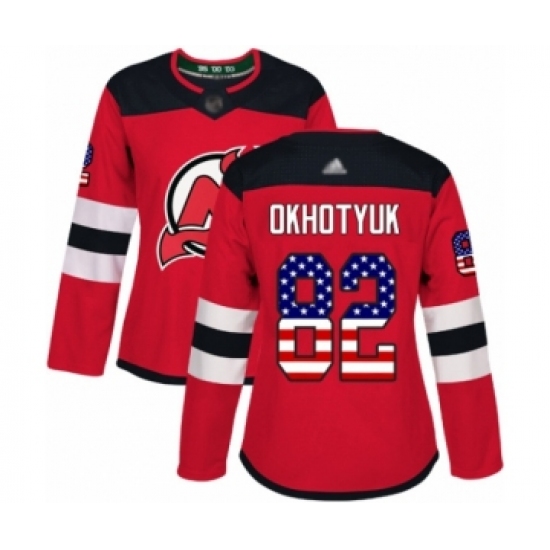 Women's New Jersey Devils #82 Nikita Okhotyuk Authentic Red USA Flag Fashion Hockey Jersey