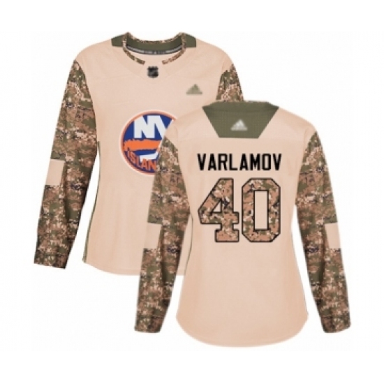 >Women's New York Islanders #40 Semyon Varlamov Authentic Camo Veterans Day Practice Hockey Jersey