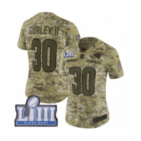 Women's Nike Los Angeles Rams #30 Todd Gurley Limited Camo 2018 Salute to Service Super Bowl LIII Bound NFL Jersey