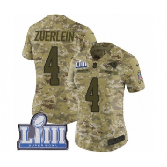 Women's Nike Los Angeles Rams #4 Greg Zuerlein Limited Camo 2018 Salute to Service Super Bowl LIII Bound NFL Jersey