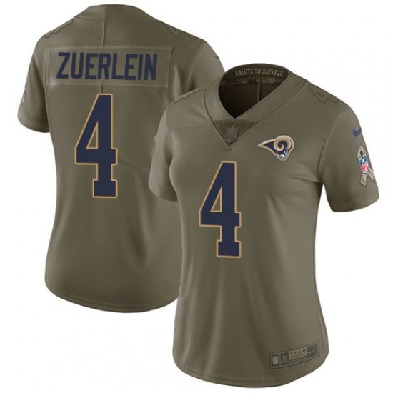Home>NFL>Los Angeles Rams>Greg Zuerlein>Women's Nike Los Angeles Rams #4 Greg Zuerlein Limited Olive 2017 Salute to Service NFL Jersey