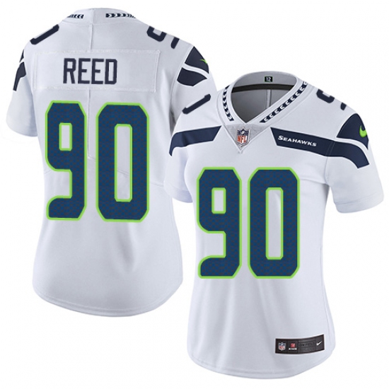 Women's Nike Seattle Seahawks #90 Jarran Reed White Vapor Untouchable Limited Player NFL Jersey