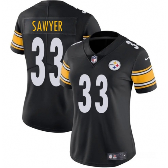 >Women's Pittsburgh Steelers #33 Jack Sawyer Black 2025 Draft Vapor Untouchable Limited Football Stitched Jersey(Run Small)