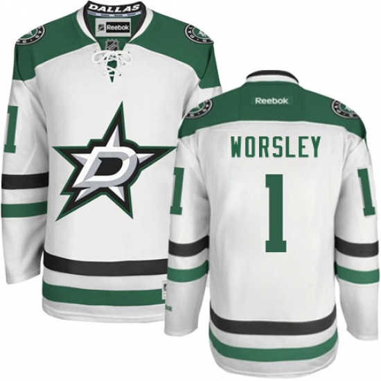 Women's Reebok Dallas Stars #1 Gump Worsley Authentic White Away NHL Jersey