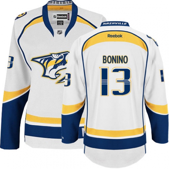 Home>NHL>Nashville Predators>Nick Bonino>Women's Reebok Nashville Predators #13 Nick Bonino Authentic White Away NHL Jersey