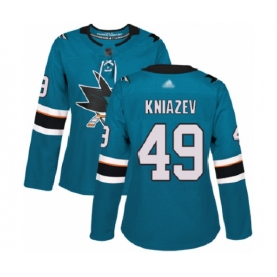 Women's San Jose Sharks #49 Artemi Kniazev Authentic Teal Green Home Hockey Jersey