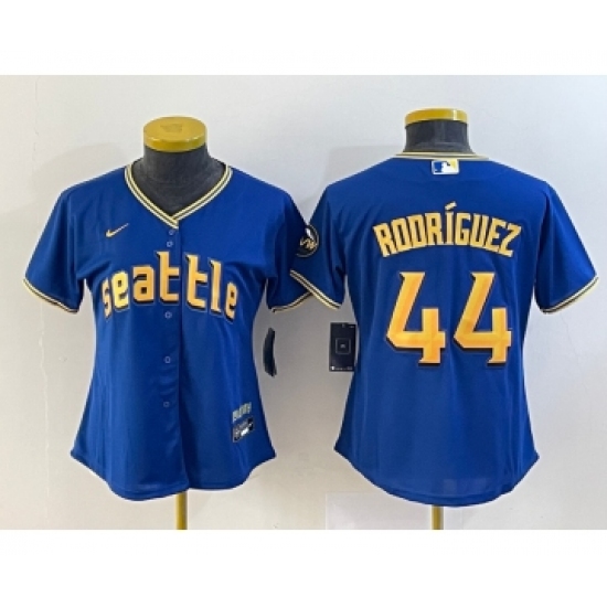 Women's Seattle Mariners #44 Julio Rodriguez Blue 2023 City Connect Cool Base Stitched Jersey