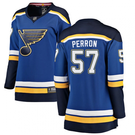 >Women's St. Louis Blues #57 David Perron Fanatics Branded Royal Blue Home Breakaway NHL Jersey