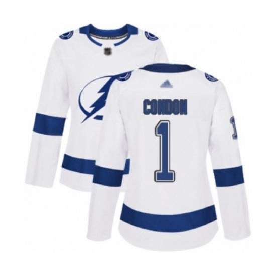 Women's Tampa Bay Lightning #1 Mike Condon Authentic White Away Hockey Jersey