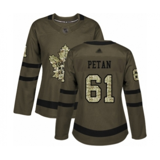 Women's Toronto Maple Leafs #61 Nic Petan Authentic Green Salute to Service Hockey Jersey