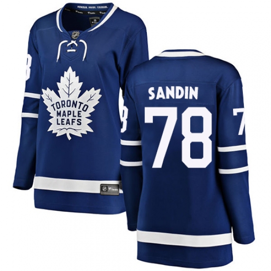 >Women's Toronto Maple Leafs #78 Rasmus Sandin Authentic Royal Blue Home Fanatics Branded Breakaway NHL Jersey