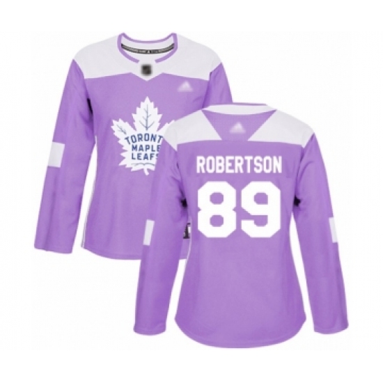>Women's Toronto Maple Leafs #89 Nicholas Robertson Authentic Purple Fights Cancer Practice Hockey Jersey