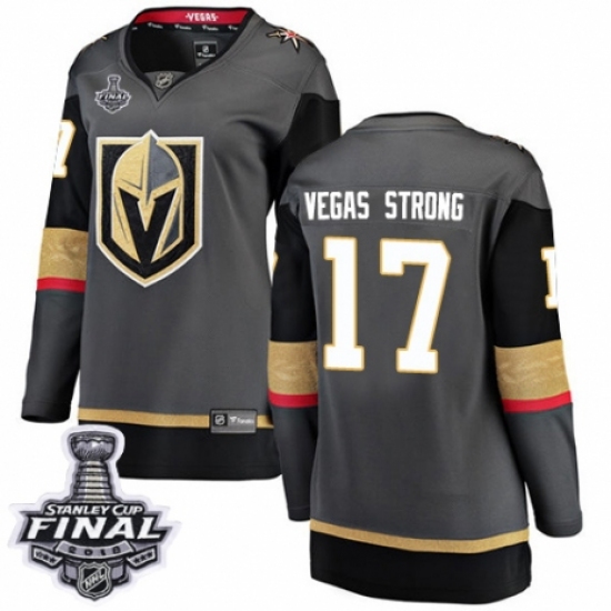 >Women's Vegas Golden Knights #17 Vegas Strong Authentic Black Home Fanatics Branded Breakaway 2018 Stanley Cup Final NHL Jersey