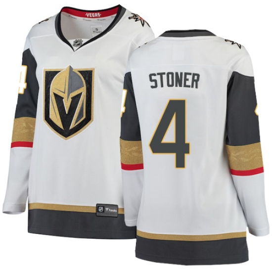 >Women's Vegas Golden Knights #4 Clayton Stoner Authentic White Away Fanatics Branded Breakaway NHL Jersey