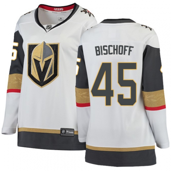 >Women's Vegas Golden Knights #45 Jake Bischoff Authentic White Away Fanatics Branded Breakaway NHL Jersey