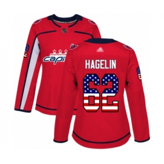 >Women's Washington Capitals #62 Carl Hagelin Authentic Red USA Flag Fashion Hockey Jersey