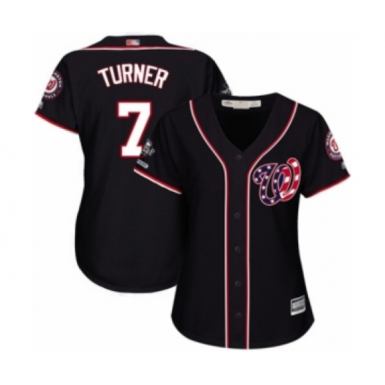 Women's Washington Nationals #7 Trea Turner Authentic Navy Blue Alternate 2 Cool Base 2019 World Series Champions Baseball Jersey