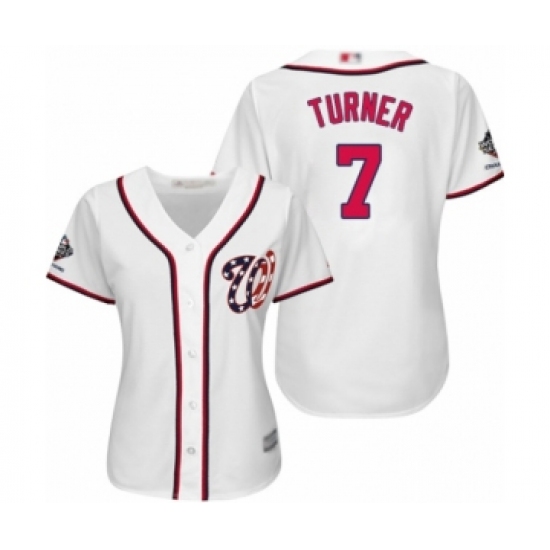 Women's Washington Nationals #7 Trea Turner Authentic White Home Cool Base 2019 World Series Champions Baseball Jersey