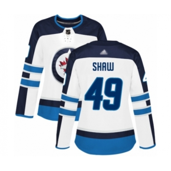 >Women's Winnipeg Jets #49 Logan Shaw Authentic White Away Hockey Jersey