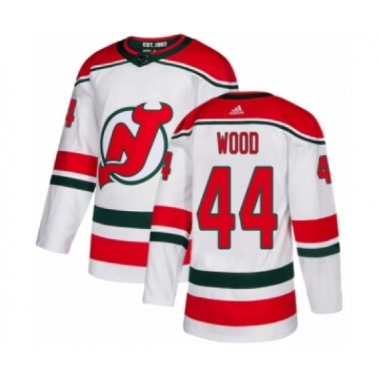 >Youth Adidas New Jersey Devils #44 Miles Wood Authentic White Alternate NHL Jersey