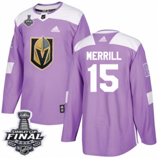 Youth Adidas Vegas Golden Knights #15 Jon Merrill Authentic Purple Fights Cancer Practice 2018 Stanley Cup Final NHL Jersey