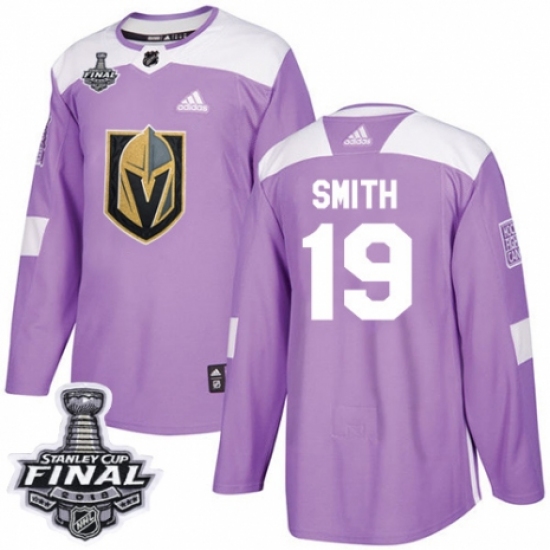 Youth Adidas Vegas Golden Knights #19 Reilly Smith Authentic Purple Fights Cancer Practice 2018 Stanley Cup Final NHL Jersey