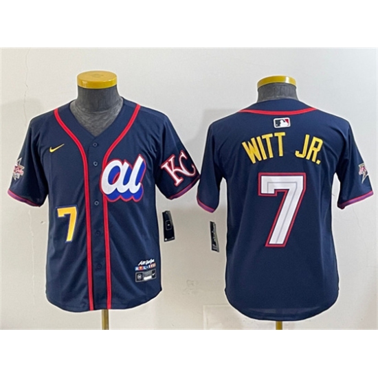 >Youth American League #7 Bobby Witt Jr. Navy 2025 All-Star Edition Limited Stitched Baseball Jersey