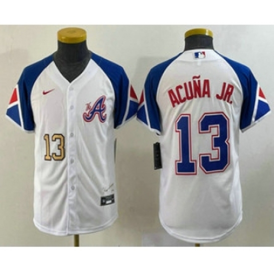 Youth Atlanta Braves #13 Ronald Acuna Jr Number White 2023 City Connect Cool Base Stitched Jersey2