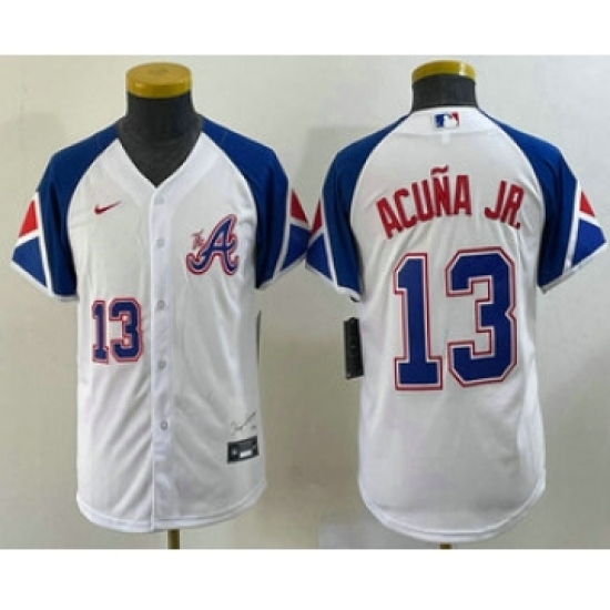 Youth Atlanta Braves #13 Ronald Acuna Jr Number White 2023 City Connect Cool Base Stitched Jersey2
