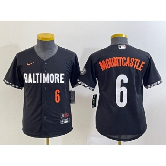 Youth Baltimore Orioles #6 Ryan Mountcastle Number Black 2023 City Connect Cool Base Stitched Jersey