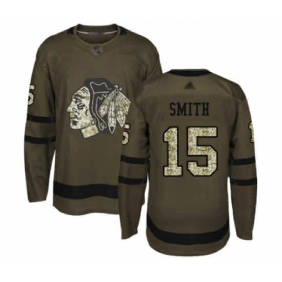 Youth Chicago Blackhawks #15 Zack Smith Authentic Green Salute to Service Hockey Jersey