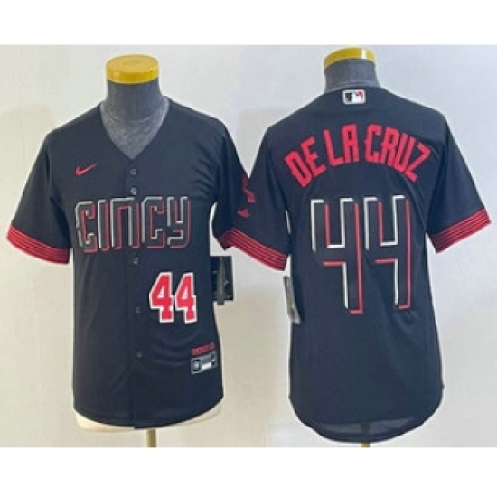 Youth Cincinnati Reds #44 Elly De La Cruz Number Black 2023 City Connect Cool Base Stitched Jersey 2