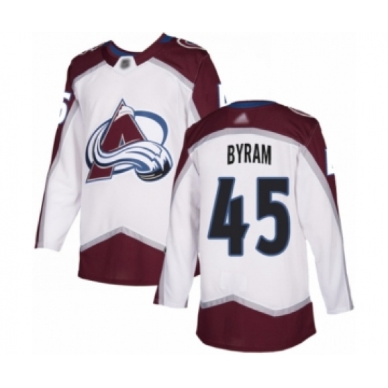 >Youth Colorado Avalanche #45 Bowen Byram Authentic White Away Hockey Jersey
