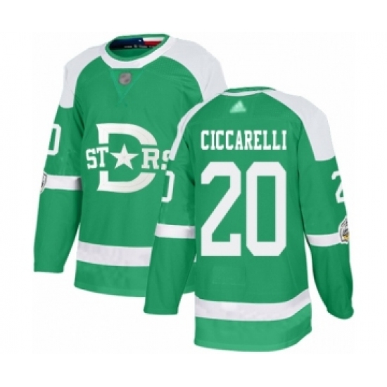 >Youth Dallas Stars #20 Dino Ciccarelli Authentic Green 2020 Winter Classic Hockey Jersey