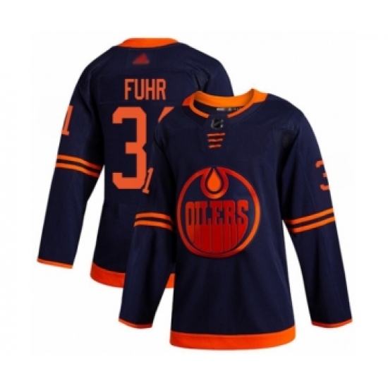 >Youth Edmonton Oilers #31 Grant Fuhr Authentic Navy Blue Alternate Hockey Jersey