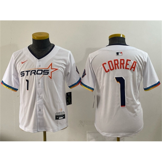 Youth Houston Astros #1 Carlos Correa White 2025 City Connect Limited Stitched Baseball Jersey