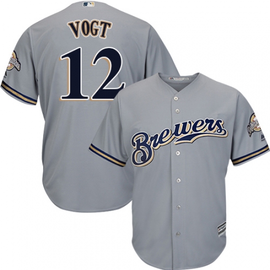 Youth Majestic Milwaukee Brewers #12 Stephen Vogt Authentic Grey Road Cool Base MLB Jersey