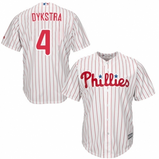 Youth Majestic Philadelphia Phillies #4 Lenny Dykstra Authentic White/Red Strip Home Cool Base MLB Jersey
