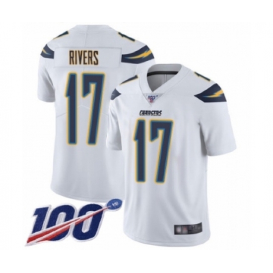 >Youth Nike Los Angeles Chargers #17 Philip Rivers White Vapor Untouchable Limited Player 100th Season NFL Jersey