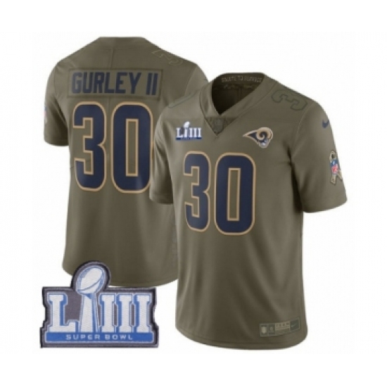 Youth Nike Los Angeles Rams #30 Todd Gurley Limited Olive 2017 Salute to Service Super Bowl LIII Bound NFL Jersey
