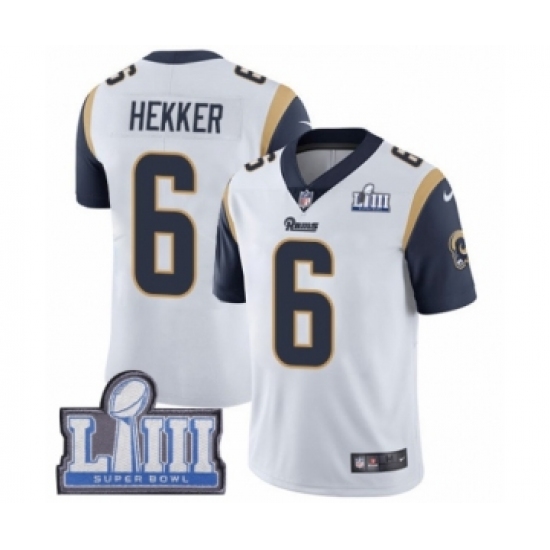 Youth Nike Los Angeles Rams #6 Johnny Hekker White Vapor Untouchable Limited Player Super Bowl LIII Bound NFL Jersey