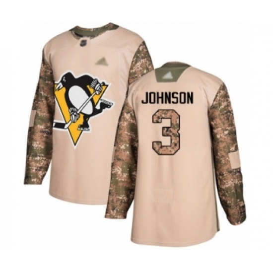 Youth Pittsburgh Penguins #3 Jack Johnson Authentic Camo Veterans Day Practice Hockey Jersey